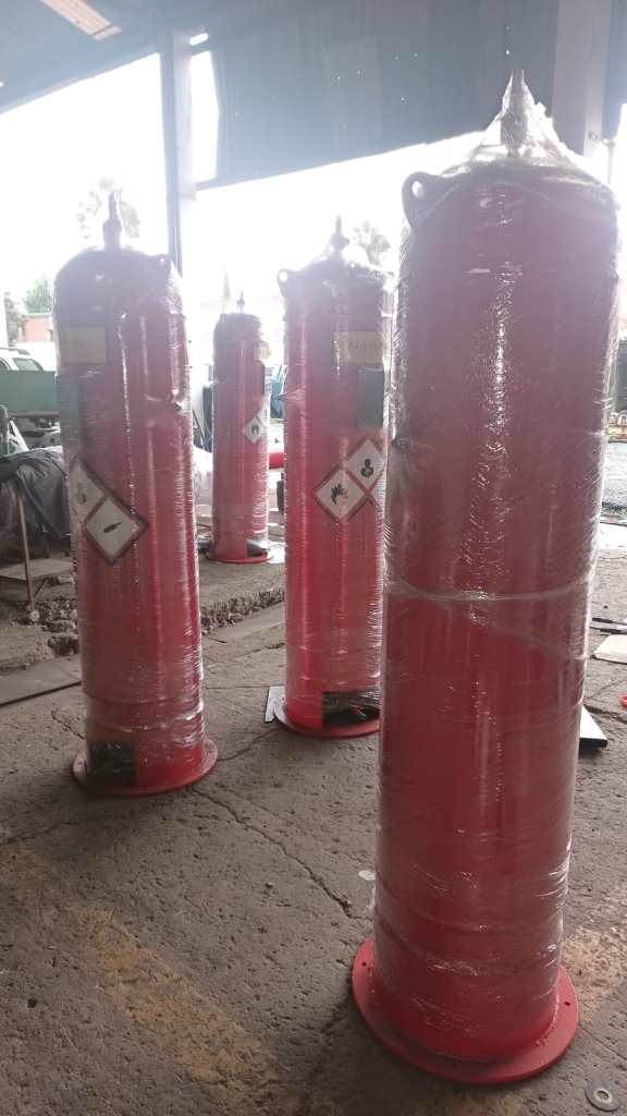 Suministro de actuadores lineales hidroneumáticos-gas directo, para válvulas de compuerta de corte on/off de 20″ 600# con tablero de control y tanque de respaldo de gas.